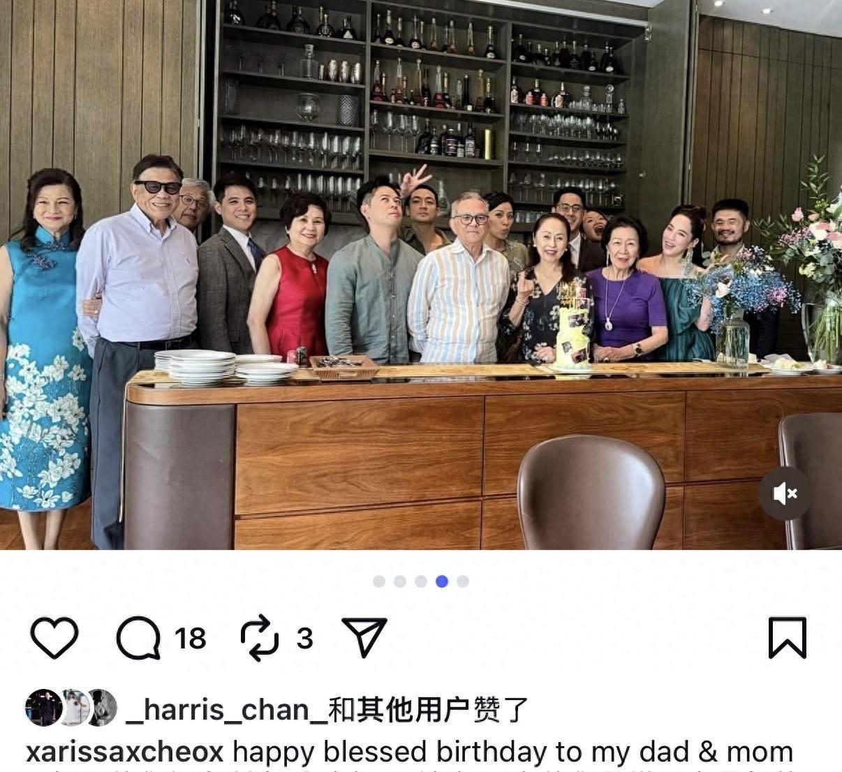 石贞善一家最近又在社交平台上刷屏了。每年12月中旬,他们姐弟仨都会聚在新加坡,给爸妈一起过生日。2025年当然也没落下。照片一发,网友直呼:这一家子是真·颜值天花板。 其实她爸妈生日只差五天,索性合办。今年的庆生宴选在本地一家讲究的餐厅,到场亲友差不多二十人。大家穿得体面又不浮夸,好几位女士选了旗袍或新中式,男士多是西装、衬衫。反倒是石家人自己穿得随性——石贞善一身蓝色露肩裙,优雅又松弛;大弟石正祥戴帽子抱沙皮狗,酷得没话说;小弟Hubert站边上,干净利落,虽自称“家里颜值垫底”,但分明也是型男一枚。